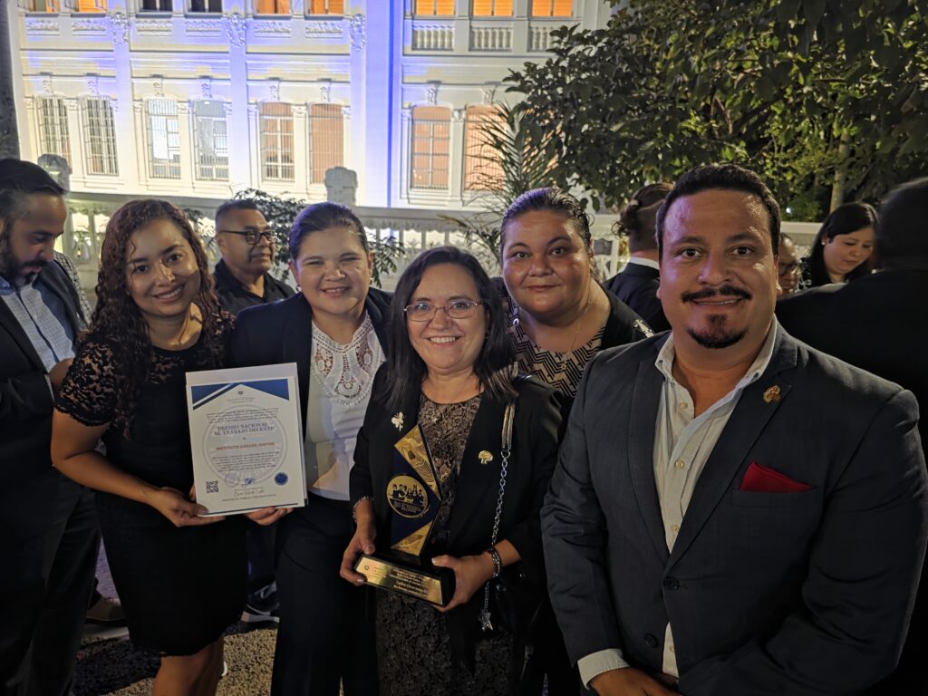 l 26 de noviembre, el Instituto Crecer Juntos fue reconocido por el Ministerio de Trabajo y Previsión Social con el Premio Nacional al Trabajo Decente, una distinción que destaca el compromiso de instituciones, organizaciones y empresas que promueven ambientes laborales justos, seguros e inclusivos en El Salvador.